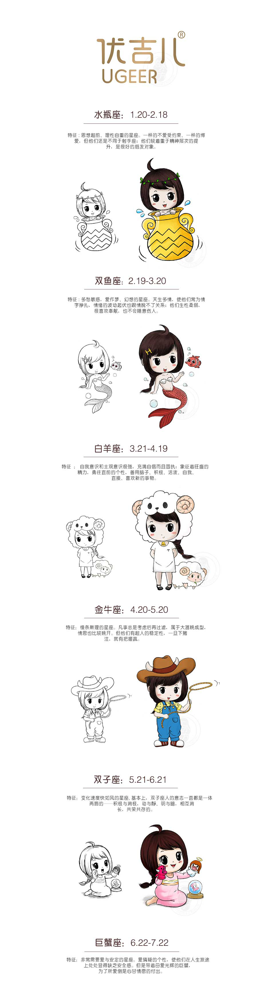 項目方案:優(yōu)吉兒品牌深挖個性特征,選擇從星座角度入手形成品牌認(rèn)知,豐富品牌文化內(nèi)涵的同時,提煉出具有系統(tǒng)性及個性化的形象載體,凸顯品牌多元化特質(zhì),配套于渠道宣傳,有助于品牌知名度的提升。