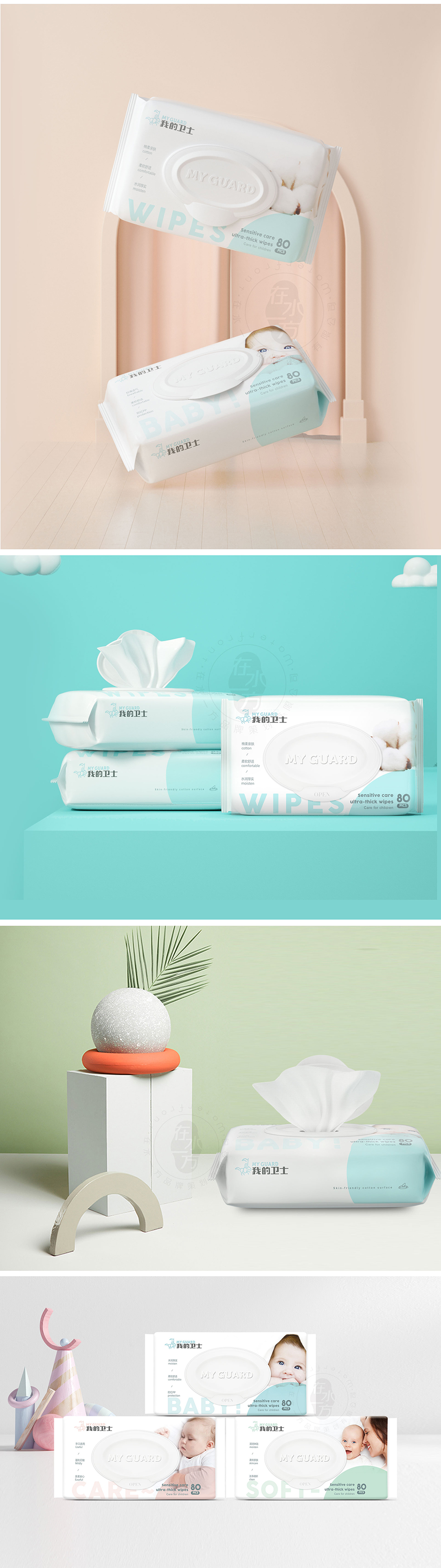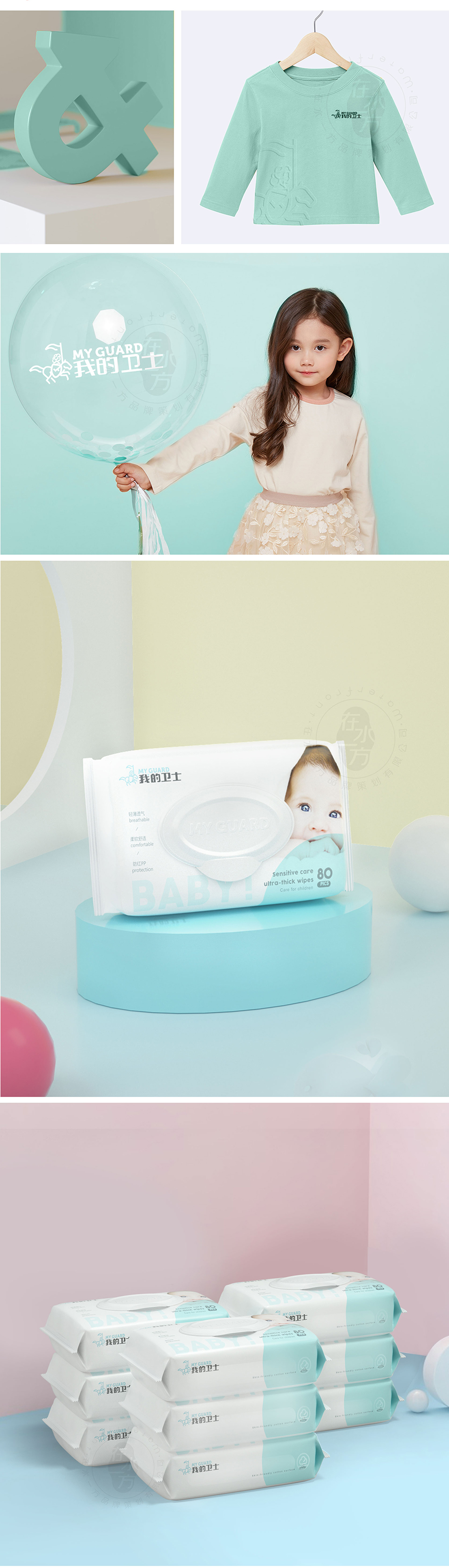 服務方案:國際化品牌形象塑造,結合新生代母嬰人群的認知特點,有意地塑造簡約清新有品質感的產品外觀,讓我的衛(wèi)士成為新生母嬰家庭的青睞品牌。