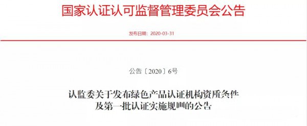 國(guó)家認(rèn)證認(rèn)可監(jiān)督管理委員會(huì)2020年3月31日下發(fā)認(rèn)監(jiān)委2020年第6號(hào)公告,公布了綠色產(chǎn)品認(rèn)證機(jī)構(gòu)資質(zhì)條件及包括紙和紙制品在內(nèi)的第一批認(rèn)證實(shí)施規(guī)則。符合《中華人民共和國(guó)認(rèn)證認(rèn)可條例》、《認(rèn)證機(jī)構(gòu)管理辦法》規(guī)定的基本條件,并具備與從事綠色產(chǎn)品認(rèn)證相適應(yīng)的技術(shù)能力的機(jī)構(gòu),可向認(rèn)監(jiān)委提出申請(qǐng),經(jīng)批準(zhǔn)后按照《綠色產(chǎn)品認(rèn)證實(shí)施規(guī)則 紙和紙制品》開(kāi)展綠色產(chǎn)品認(rèn)證。紙和紙制品綠色產(chǎn)品認(rèn)證即將全面開(kāi)展。