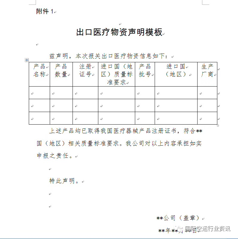 (出口醫(yī)療物資聲明:表格不能留空,表頭不要有模板兩個(gè)字,蓋生產(chǎn)銷售單位公章,每項(xiàng)必須填滿)