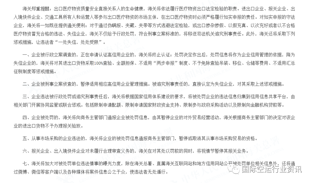對(duì)于通過(guò)偽瞞報(bào)、夾藏、夾帶等方式逃避法定檢驗(yàn),或出口摻雜摻假、以假充真、以次充好或者以不合格醫(yī)療物資冒充合格的違法、失信企業(yè),海關(guān)不僅給予行政處罰,符合刑事立案標(biāo)準(zhǔn)的,將移送司法機(jī)關(guān)追究刑事責(zé)任。
