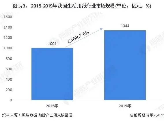 這一時期中國經(jīng)濟(jì)運(yùn)行總體平穩(wěn)、穩(wěn)中有進(jìn),中國生活用紙市場在此大背景下繼續(xù)保持穩(wěn)定增長,行業(yè)規(guī)模從2015年的1004億元人民幣,增長到2019年的1344億元人民幣,CAGR為7.6%。