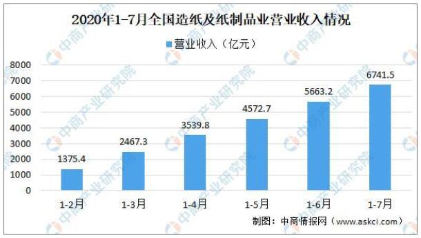 從行業(yè)效益情況來(lái)看:數(shù)據(jù)顯示,2020年1-7月,全國(guó)造紙及紙制品業(yè)營(yíng)業(yè)收入6741.5億元,同比下降7.9%;利潤(rùn)總額331.9億元,同比增長(zhǎng)5.5%。