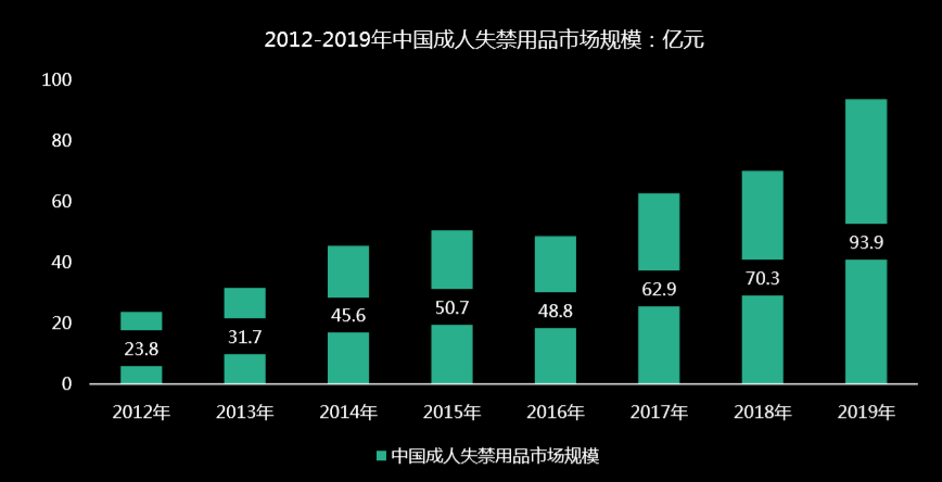 根據(jù)人口失禁發(fā)生率和人口結(jié)構(gòu)估算,中國(guó)失禁的人數(shù)在2-3億人,按照每人正常使用片單數(shù)去核算,這個(gè)群體的失禁用品規(guī)模應(yīng)該是現(xiàn)在實(shí)際的4-5倍(2019年中國(guó)成人失禁用品市場(chǎng)規(guī)模為93.9億元),這還是保守估算的結(jié)果。