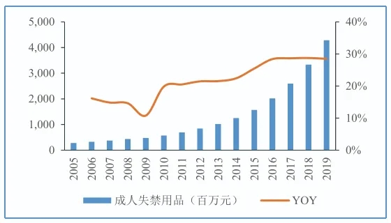 中國(guó)成人失禁用品市場(chǎng)保持高速增長(zhǎng)。據(jù) Euromonitor 統(tǒng)計(jì)數(shù)據(jù),2019 年全球成人失禁用品規(guī)模達(dá)到 96 億美元,同比增長(zhǎng) 8.87%,2019 年中國(guó)成人失禁用品零售規(guī)模 43 億人民幣,同比增長(zhǎng)28.49。而在所有吸收性衛(wèi)生用品中,成人失禁護(hù)理產(chǎn)品所占比重也上升到8.1%。